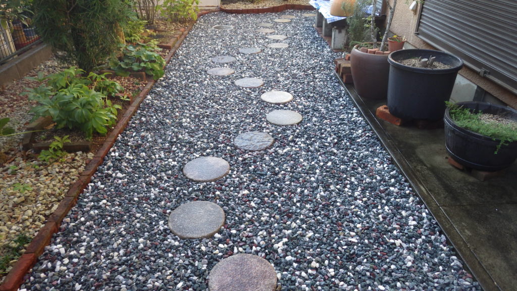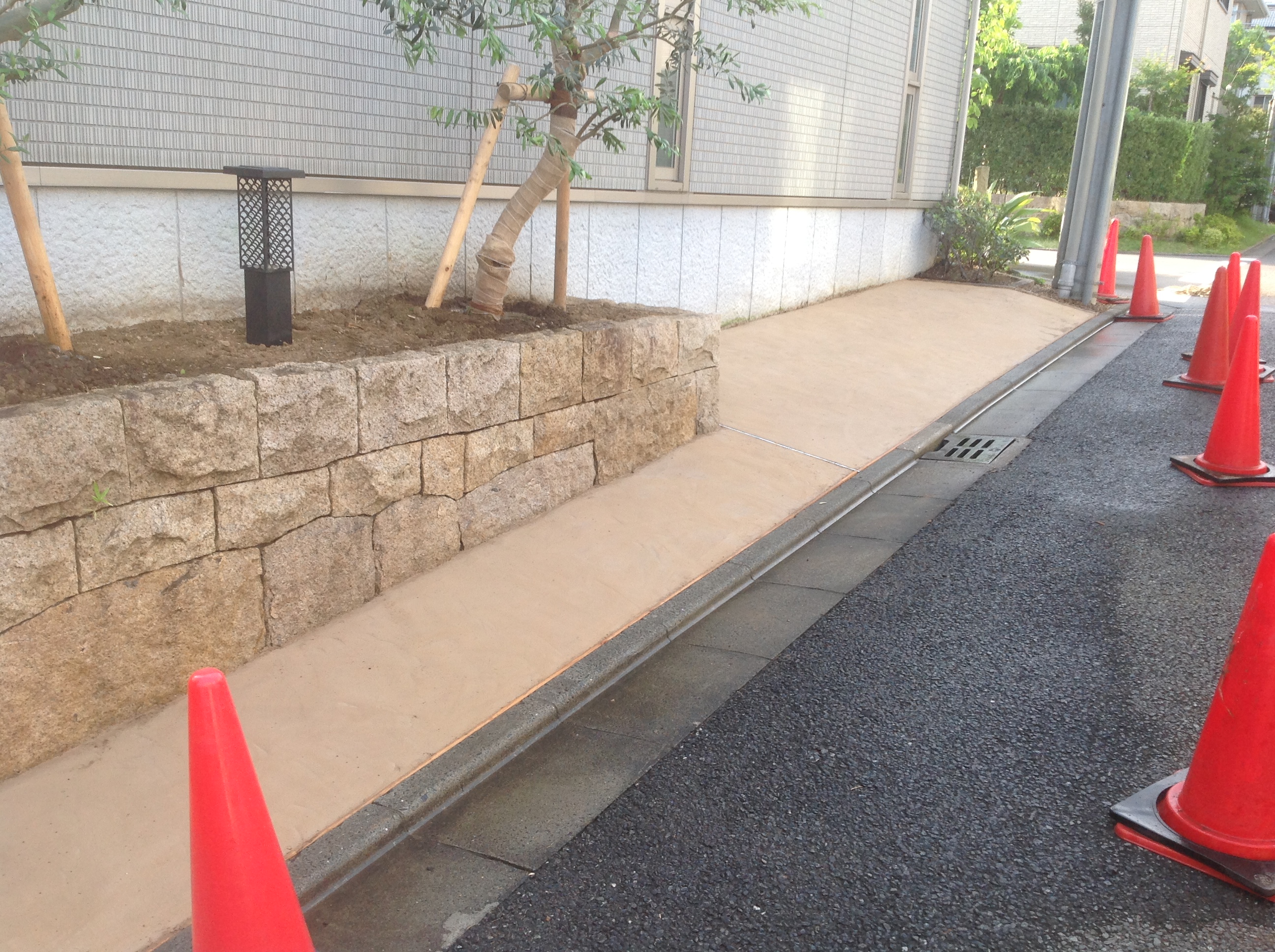 来客時に車の乗り入れも可能な厚さにしてあります(2019.06施工)