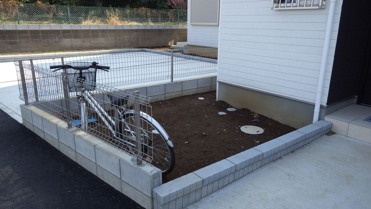 内容は、芝貼りと砂利敷きです。